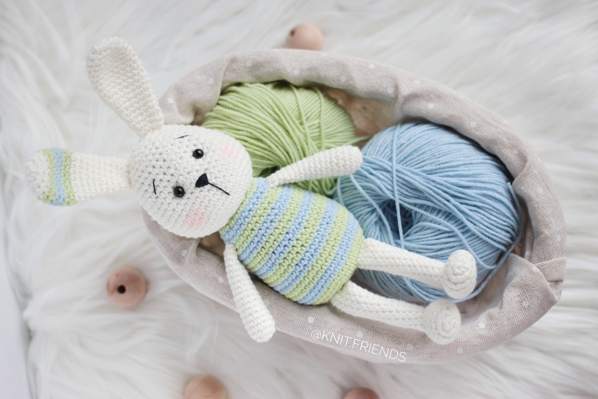 With this crochet pattern, you can make this amigurumi long-eared bunny :)