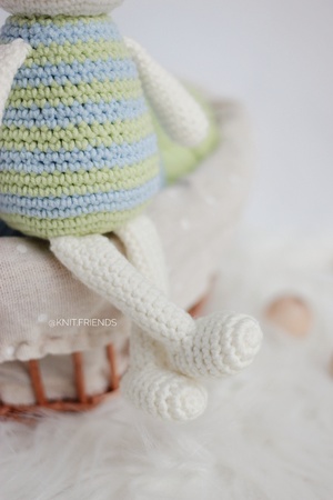 The crochet pattern is in PDF format consists of 8 pages of the detailed, step-by-step description how to crochet cute amigurumi bunny.