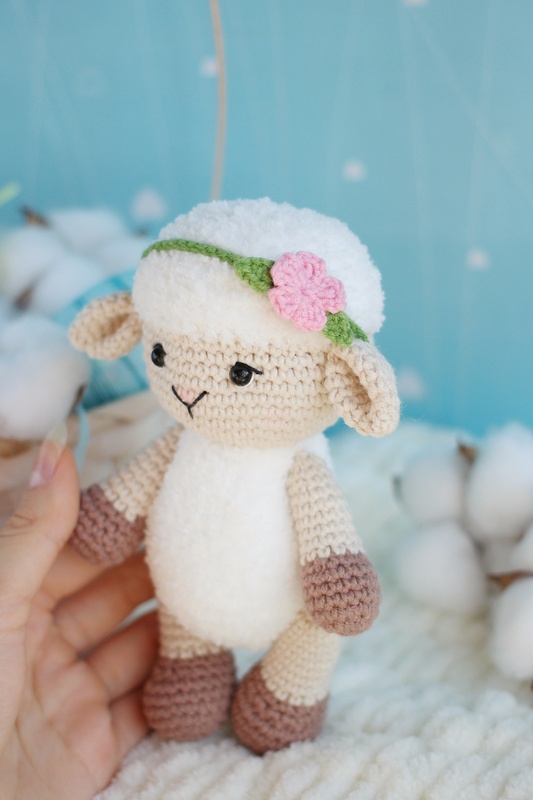 The crochet pattern is in PDF format consists of 13 pages of the detailed, step-by-step description how to crochet amigurumi animal lamb.