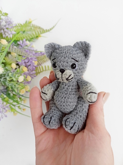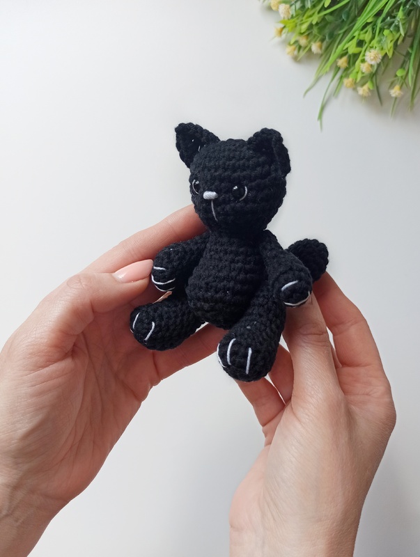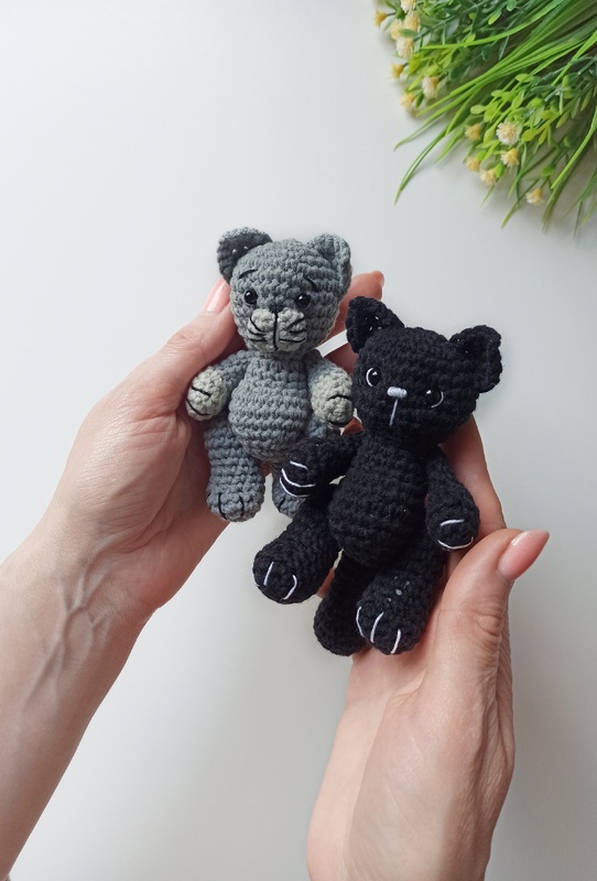 This crochet cat amigurumi pattern will help you make a miniature cat figurine with your own hands. This pattern includes all the instructions needed to make a cute kitten. It can be a great plush keychain or cute keepsake toy)
