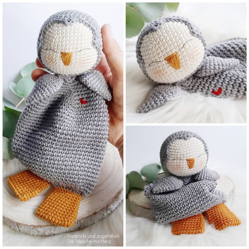 With this pattern you can crochet a comforter or a stuffed toy looking like a little penguin.
