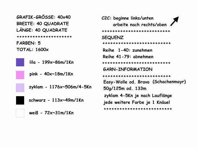 LeilA ist ein digitales Diagramm, das für verschiedene Häkeltechniken verwendet werden kann, wie Ecke zu Ecke = C2C, Mini C2C, feste Maschen, halbe Stäbchen, Stäbchen, tunesisch häkeln, Bobble Stitch. Alternativ kann dieses Produkt auch für Kreuzstich, Stricken, Hamma-Perlen, Kunststoff-Leinwand und andere Projekte verwenden werden.