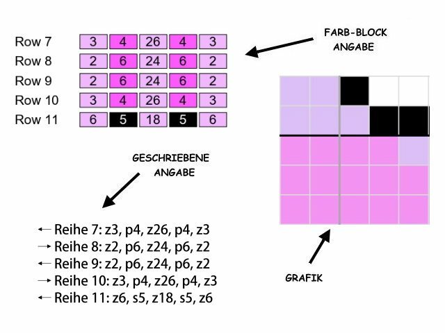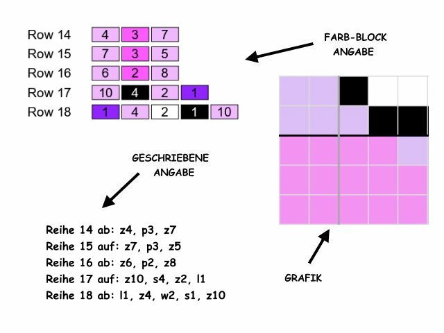 -farbige Zahlen-Blöcke für jede Zeile für C2C-Technik