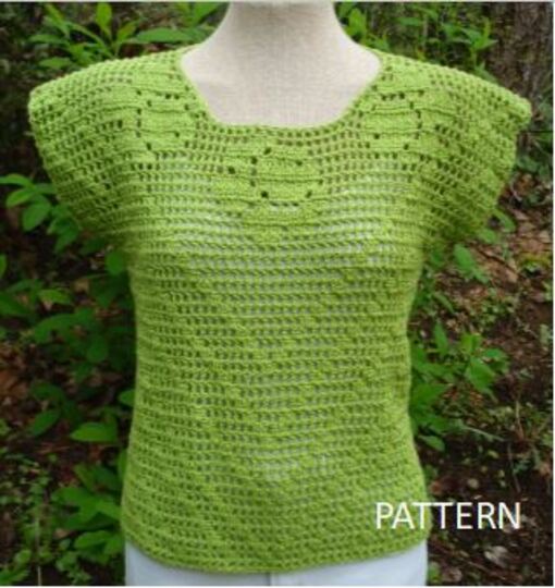 This design is a little bit different from traditional filet crochet as the squares are worked in cluster stitches to give the design a little more definition. The top can be crocheted quickly and easily from a chart that is included in the pattern instructions.