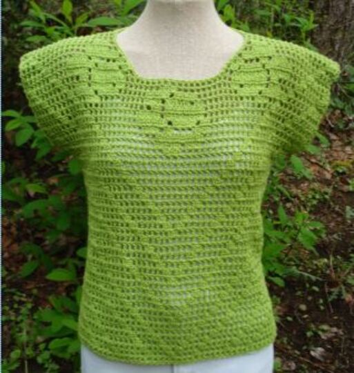 Materials: Yarn: The T-Shirt shown in the photograph is crocheted in "Cotton DK" (a light DK or sports weight yarn) from Paintbox Yarns. If you are using a different yarn than the one suggested in the pattern, make sure your gauge is very close to 2 3/4 ch-1 sps and 2 1/2 rows equal one inch.