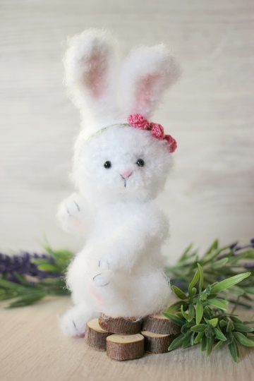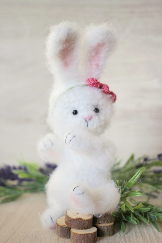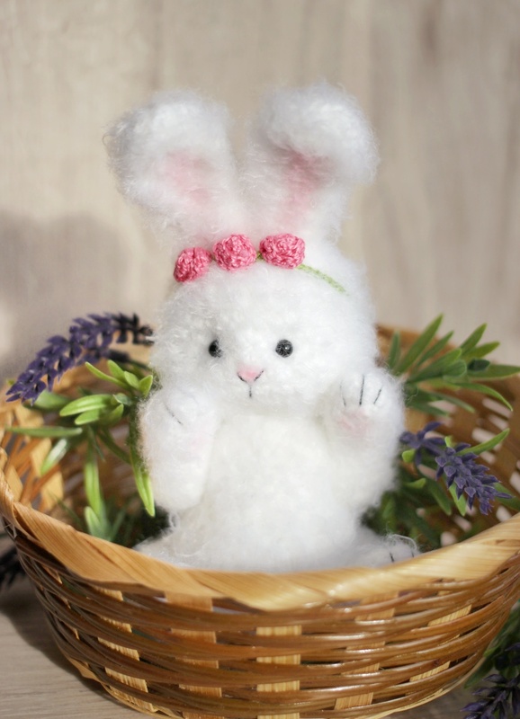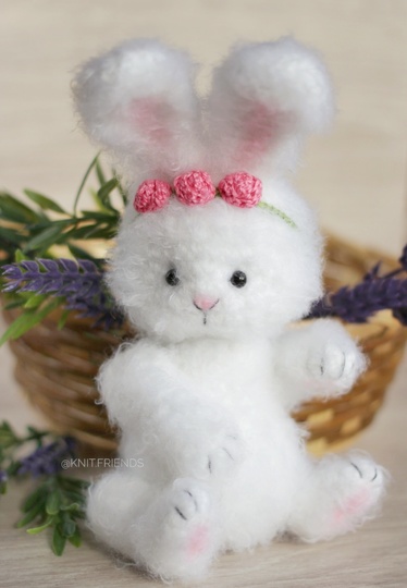 With this crochet pattern, you can create an amigurumi little fluffy bunny!
