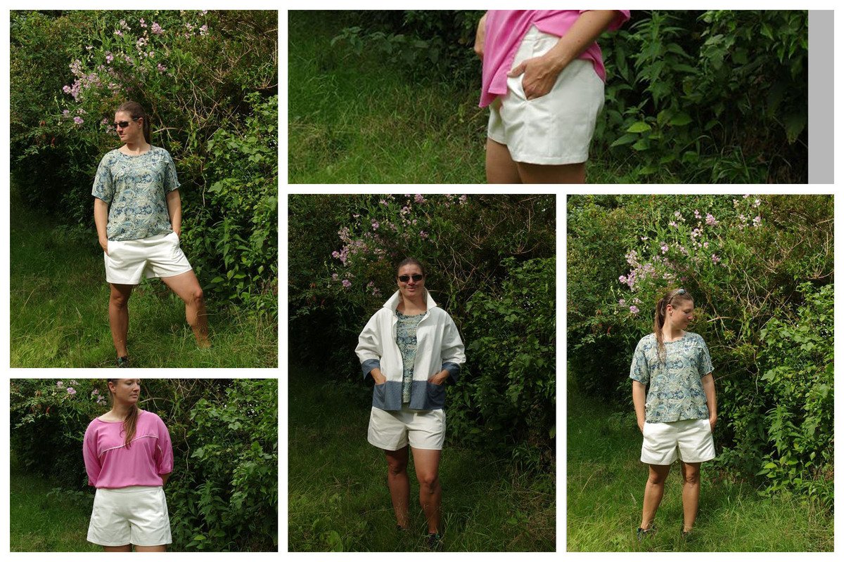 Clever dividing seams allow for creative combinations of different fabrics and patterns. The pants can be sewn as shorts, rolled up for a casual style, in ¾ length, or as a long version with a cross seam.
