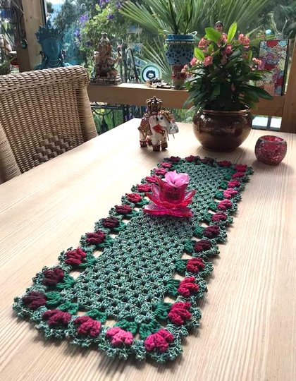 Der Tischläufer/Tischdeckchen "Blütenhain" ist doch bezaubernd und verschönert Deinen Tisch und auch gleich das ganze Zimmer!..."Blütenhain" ist auch ein prima Geschenk für einen lieben Menschen....statt ein Blumenstrauss?