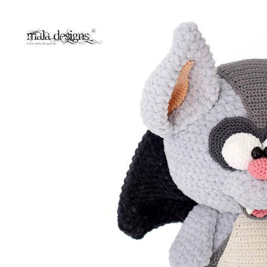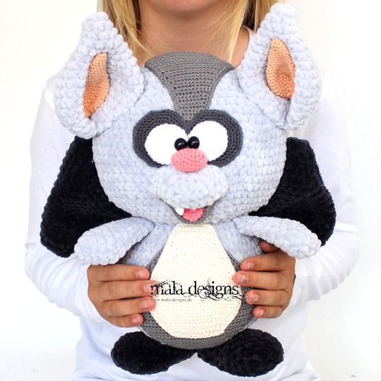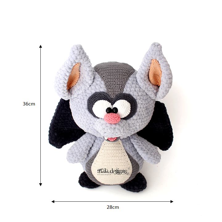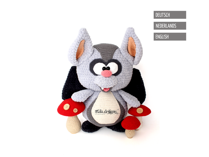 This crochet pattern contains the description for three different toadstools and the bat.. After finishing, the bat will be approx. 36cm x 18cm (HxW).