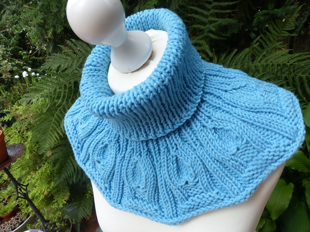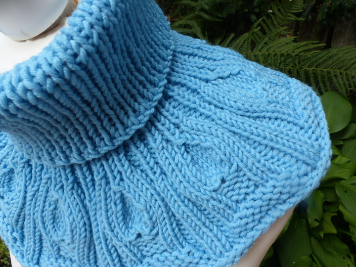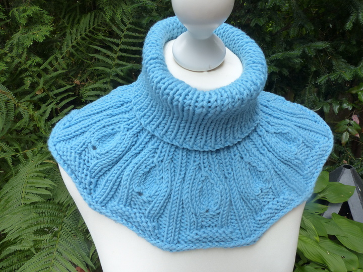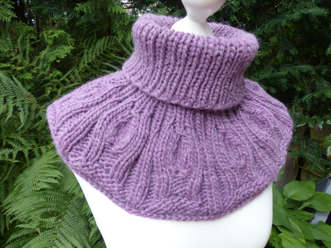 Dieser Kragen wurde in Runden mit einer kurzen Rundstricknadel gestrickt.