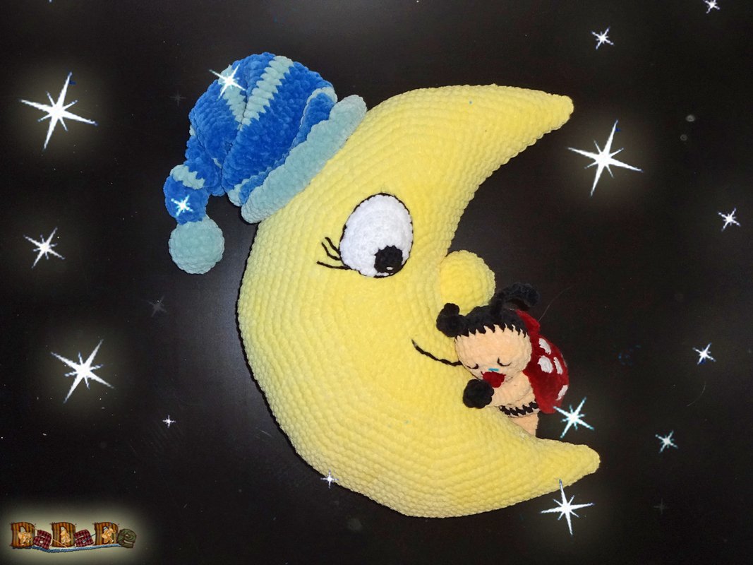 oder häkelt den Mond als Kissen ohne Spieluhr.
