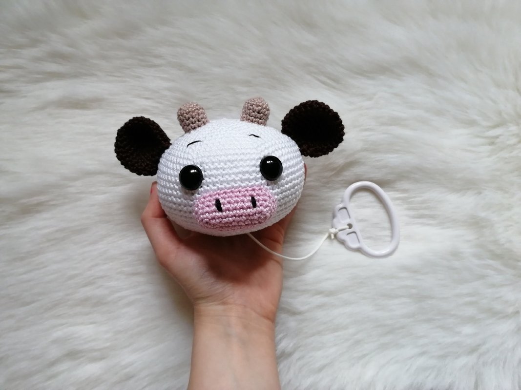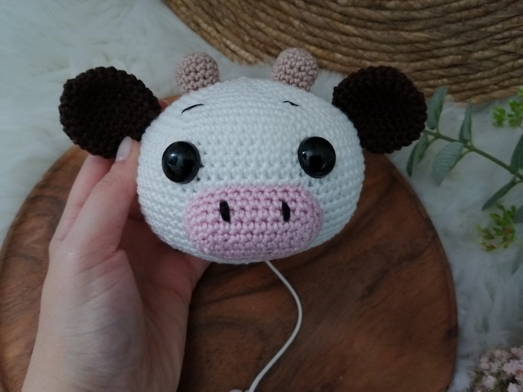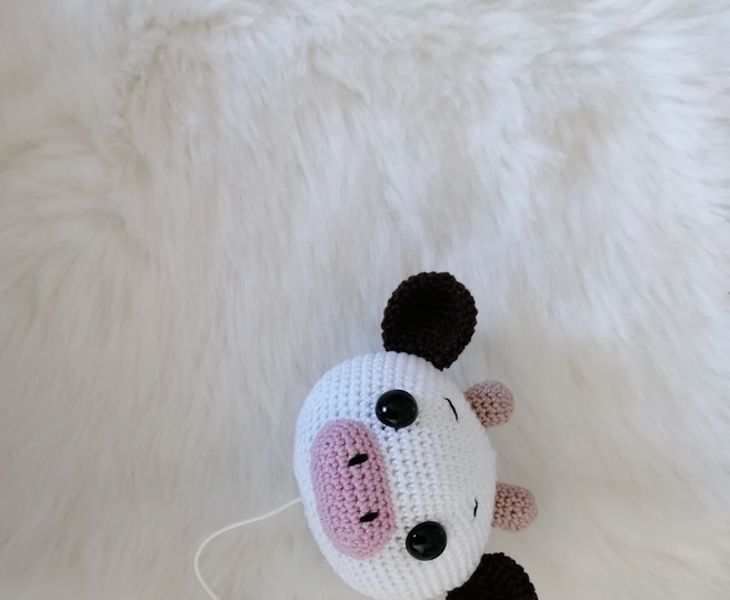 If you’re using a 3mm hook and the suggested yarn the Cow will be approximately 13 cm tall.