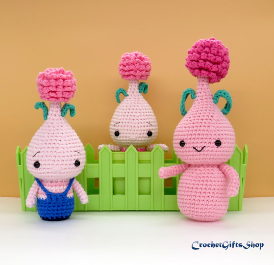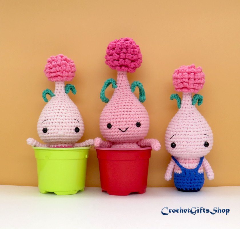 Amigurumi Baby Onion Allium: https://www.crazypatterns.net/en/items/63284/amigurumi-baby-onion-allium