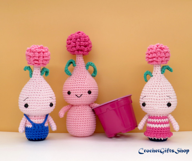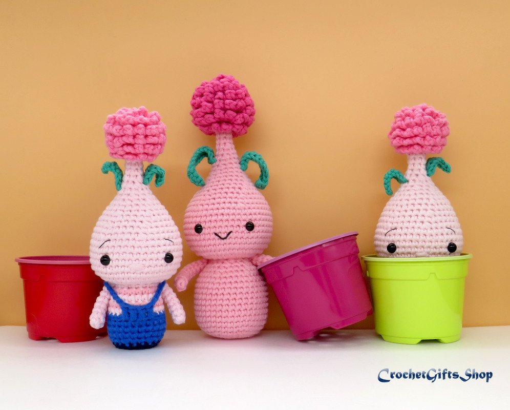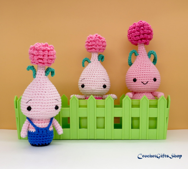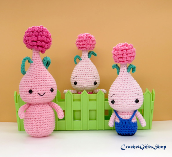 Cute Crochet Amigurumi Flower spring Onion Allium bulb and Baby doll Onion Allium boy and girl