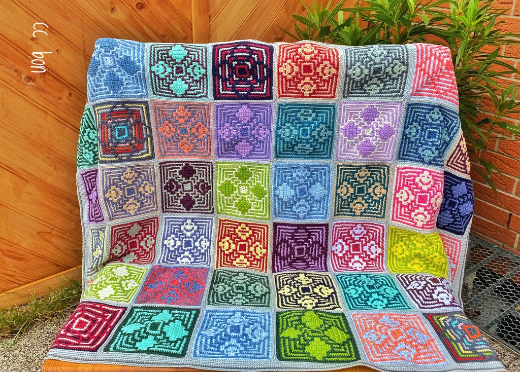 Following this pattern, I show you how to crochet this funny square in mosaic technique. The pattern comes with a written description and additionally contains a chart for mosaic stitches. There are a lot of variations of this granny. I cannot describe them all, but some of the variations you will find as bonus-charts at the end of this document. Yo you will get a pattern for more than 4 different squares.