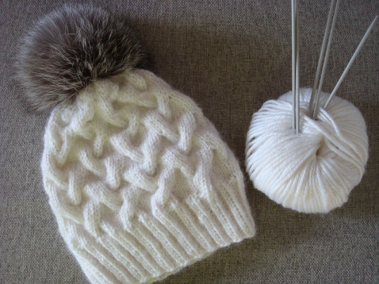 This pom-pom beanie with cable knit is a very fun and fashionable hat.