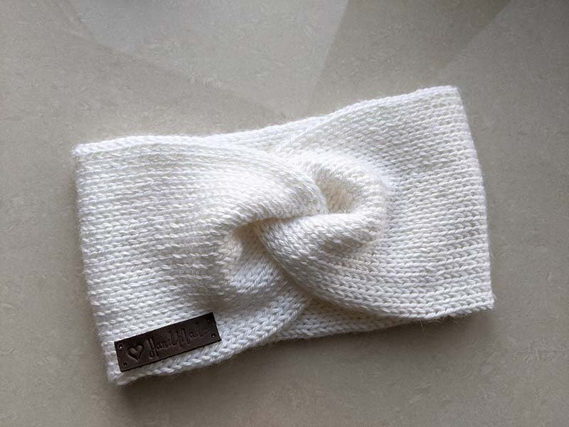 This listing features a warm knitted top knot twisted headband / ear warmer pattern. Looks gorgeous on adults and babies.