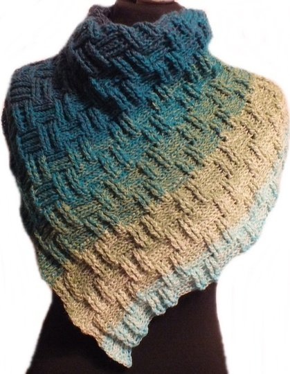 Verflochtene Dreiecke Schal mit einem Muster aus Reliefstäbchen, verkreuzte Reliefstäbchen bilden kleine