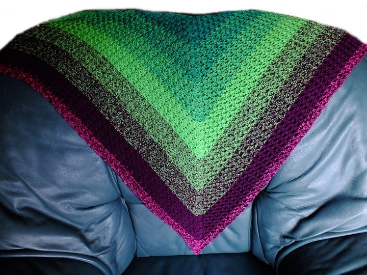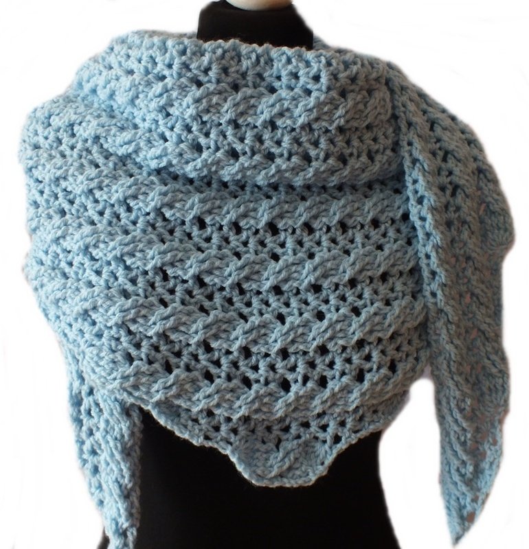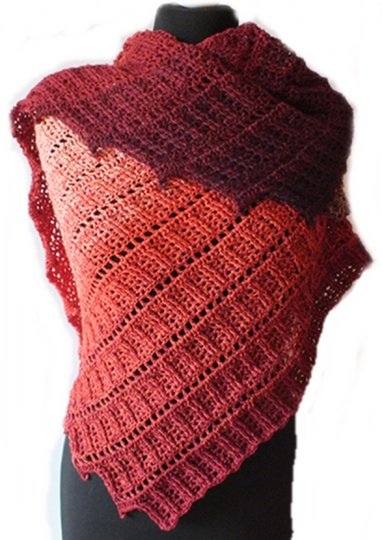 Triaberia Dreieckstuch symmetrisch von oben nach unten gehäkelt mit Reliefstäbchen, toller plastischer Effekt