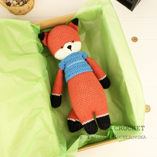 Fuchs – Größe 34 cm, mit dem angegebenen Häkelgarn.