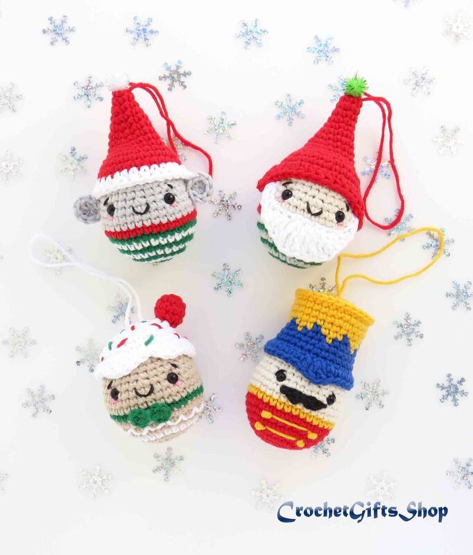 E-book in pdf format for crochet Christmas ornament Nutcracker and friends - Gnome, Gingerbread man and Mouse.