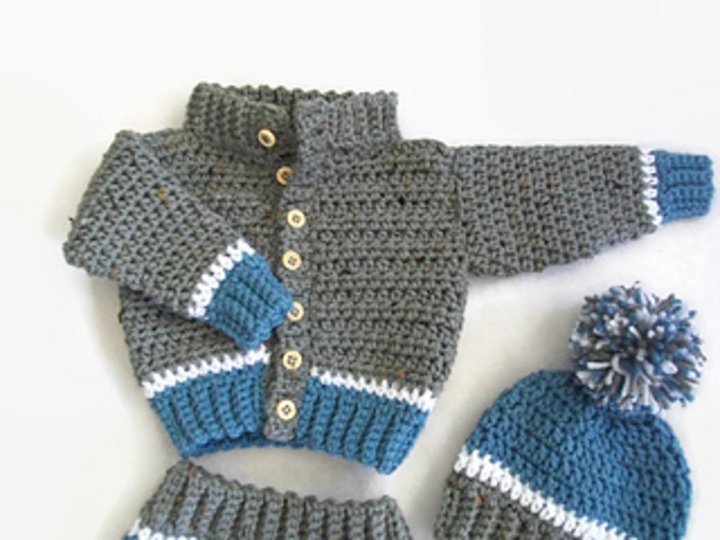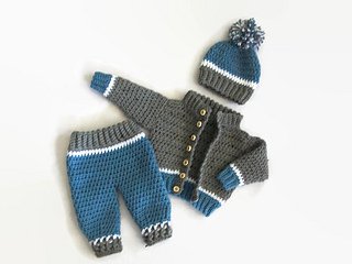 Super quick, easy and absolutely adorable baby boy country outfit. Little pants, sweater and a cute hat to finish this outfit off. Also super sweet in other colors if your trying to make it look more girls. The pattern is written in US terminology. Comes with instructions for all that are in the pictures.