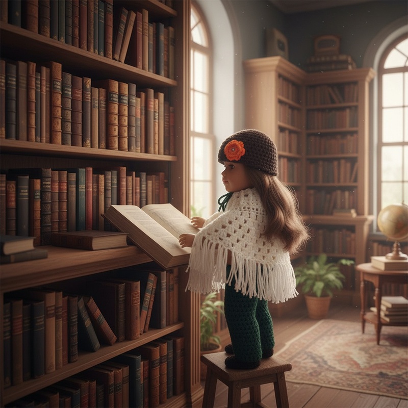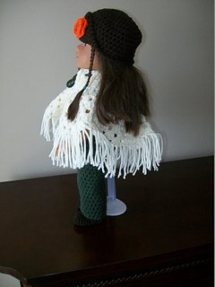 Crochet doll clothes pattern for the 18” inch doll. She will be in style this fall, or even during the winter months. This doll poncho is sure to be a hit with any doll lover. The pattern is all written in US terminology. Instructions are for the poncho, hat, shoes, and pants.