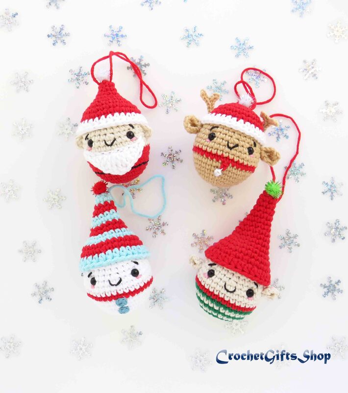 E-book in pdf format for crochet Christmas ornament Santa Claus and friends - Elf, Snowman and Reindeer.