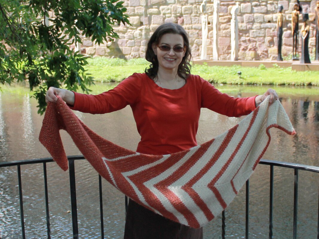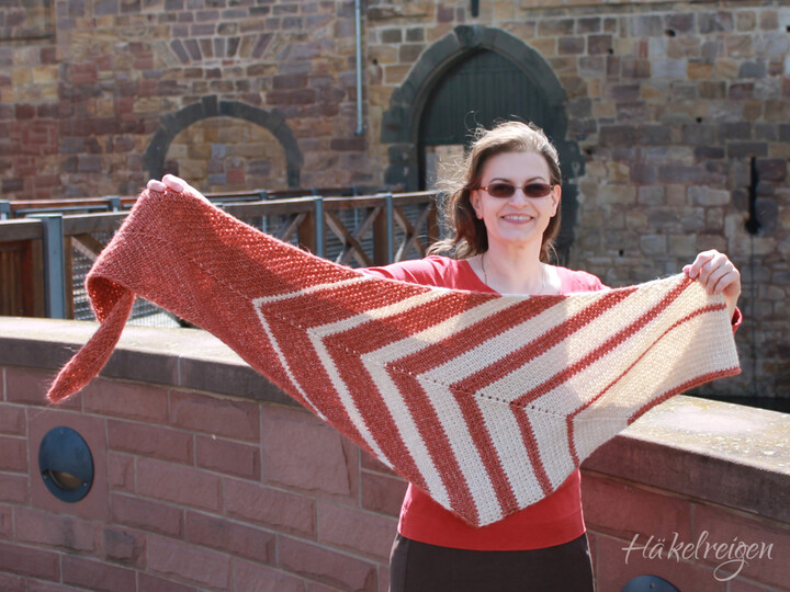 Meridia is an asymmetric triangle shawl for aran weight yarn made in Tunisian crochet.