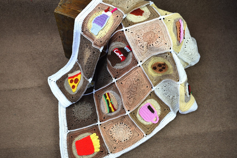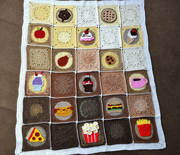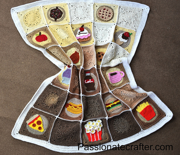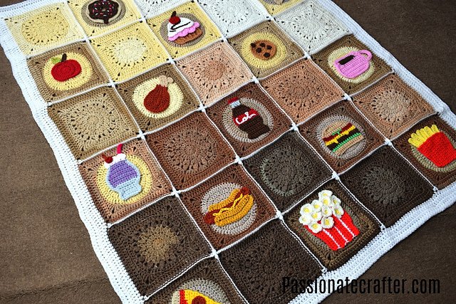 "Sweets and treats " themed applique blanket is made with 15 sweet appliques. This pattern is perfect for any who loves sweet delights as - ice cream, dognut, cake, milkshake, pie and all the delicious but forbidden food for our health - :) .