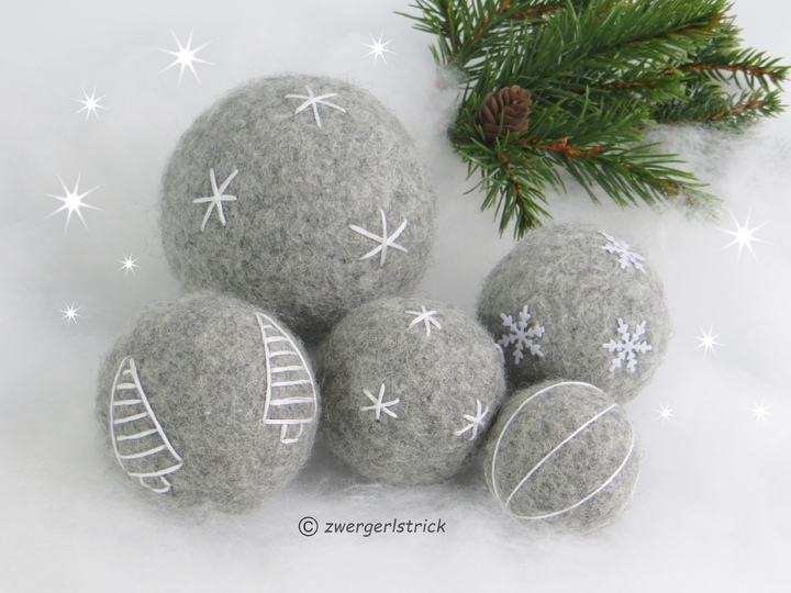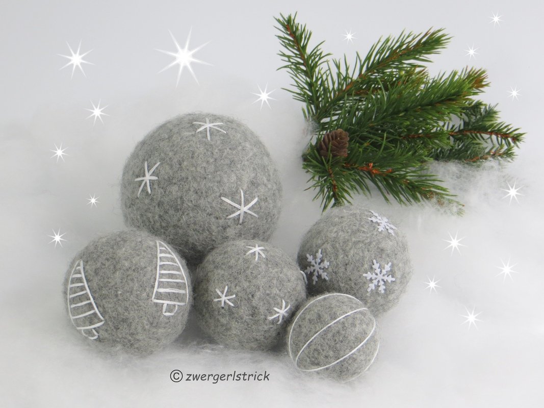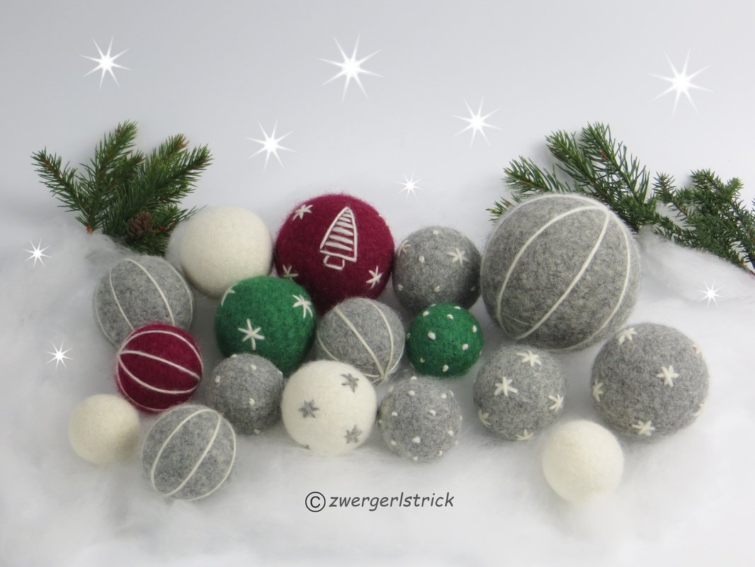 Aber auch außerhalb der Weihnachtszeit finden gefilzte Kugeln vielseitige Verwendung, z.B. in bunten Farben für Mobiles, Jonglierbälle, Spielbälle für Kleinkinder usw.