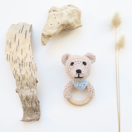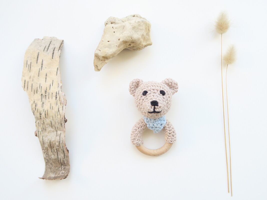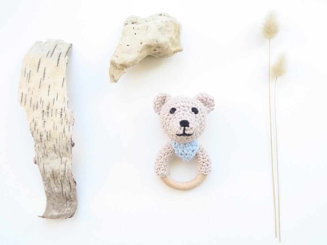 Beißring und Rassel in Einem. Somit ist der kleine Teddy von GoldKindBerlin nicht nur ein Hingucker und Spielzeug, sondern erleichtert den Kleinen auch das Zahnen. Dieses Tutorial beschreibt die Herstellung der Rassel. Es handelt sich um KEIN fertiges Produkt.
