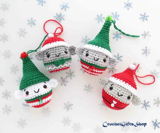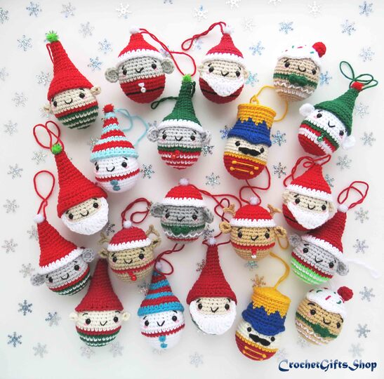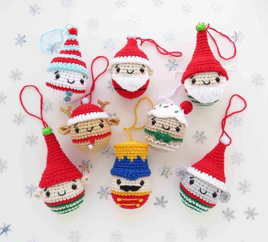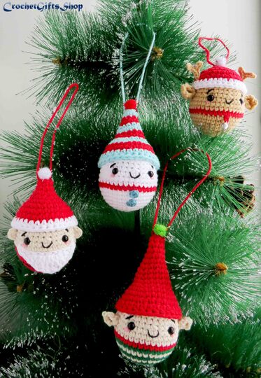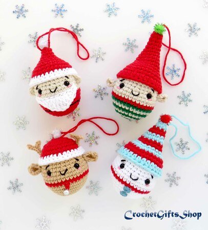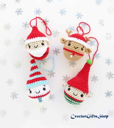Santa Claus and friends - Elf, Snowman and Reindeer https://www.crazypatterns.net/en/items/64436/crochet-pattern-christmas-ornament-santa-claus-and-friends