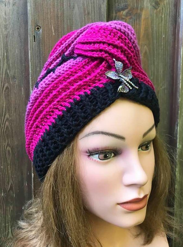 Für den Turban Tamara benutze ich eine Wolle die auf 50 gr- 120 m hat