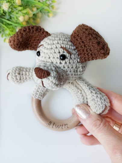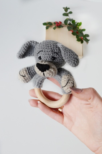 Crochet dog rattle with teether ring pattern, baby rattle toy PDF pattern will give you an interesting experience and you will for sure be in love with the finished toy.) This adorable rattle is the great baby shower or birthday gift for little ones in your life.