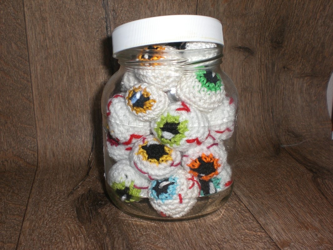 Einfache Häkelanleitung für gruselige Halloween Augen