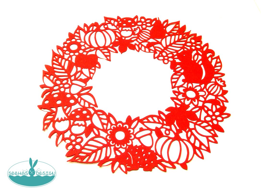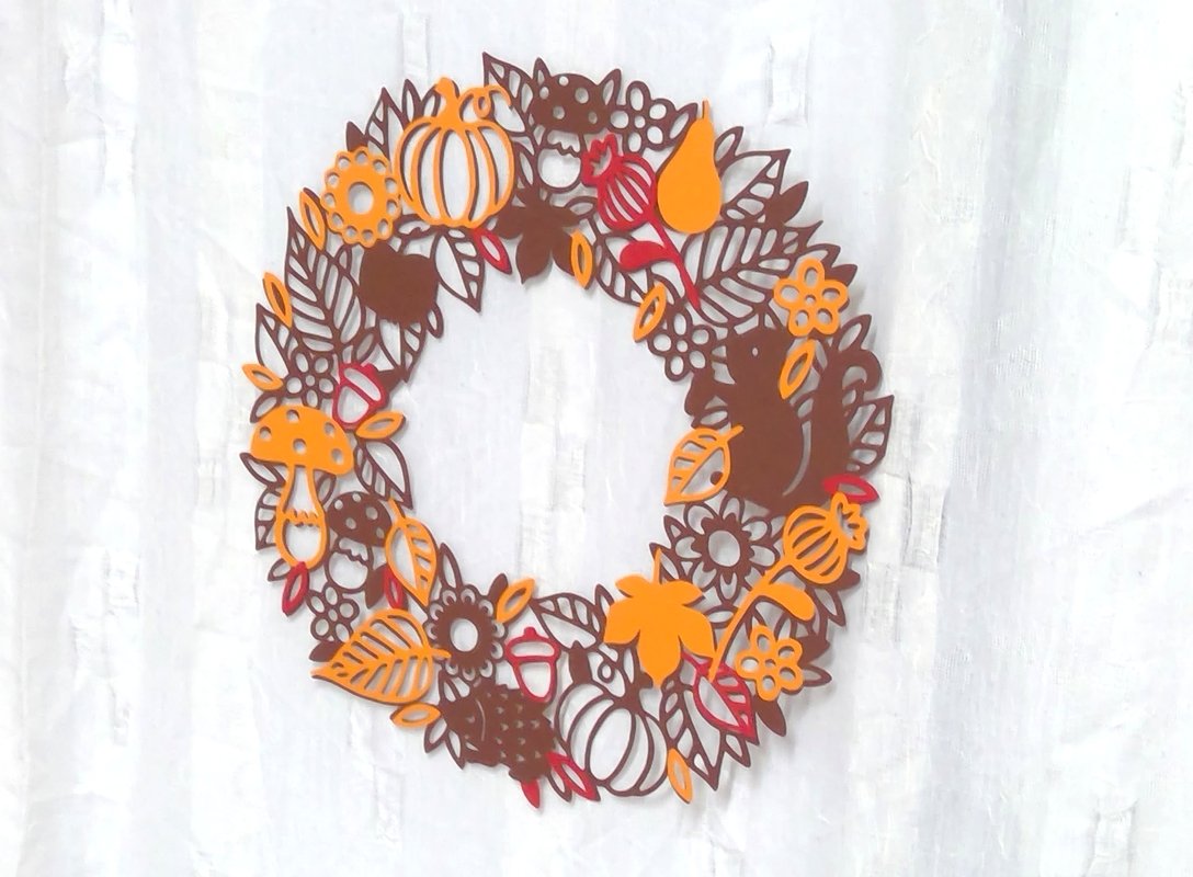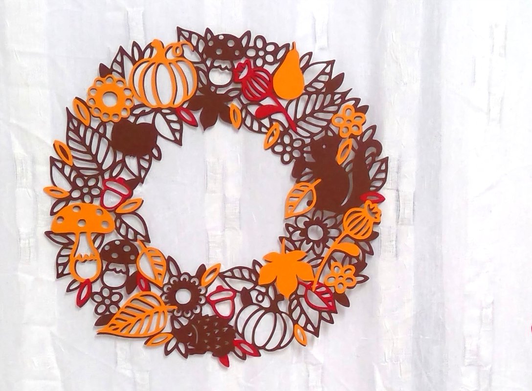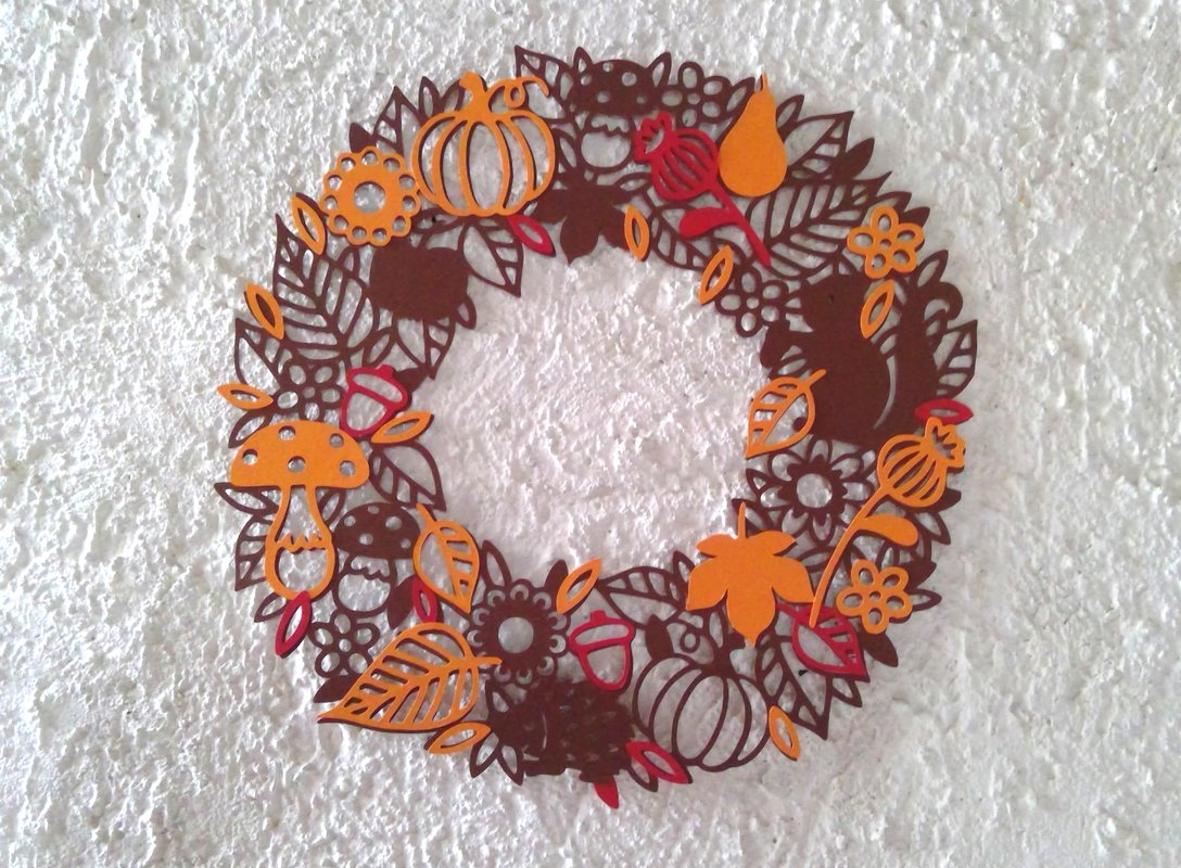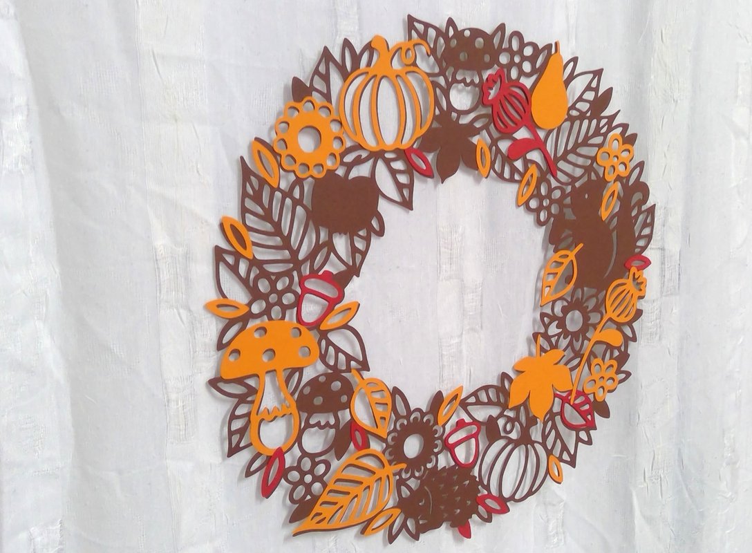 Die Plotterdatei Herbstkranz kann mit Papier, Folie oder anderen Materialien geplottet werden.
