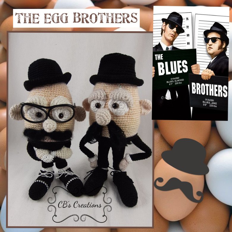 The Blues Brothers with a twist. Tough looking guys with a Mexican gringo/bandit moustache and dark glasses. These Egg Brothers have no criminal records and will help you wherever they can. But whether they are as musical as the Blues Brothers? Let’s hope so!