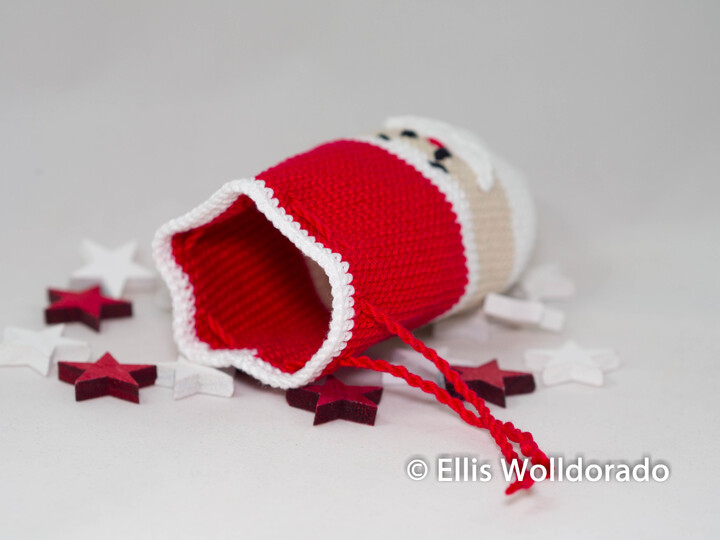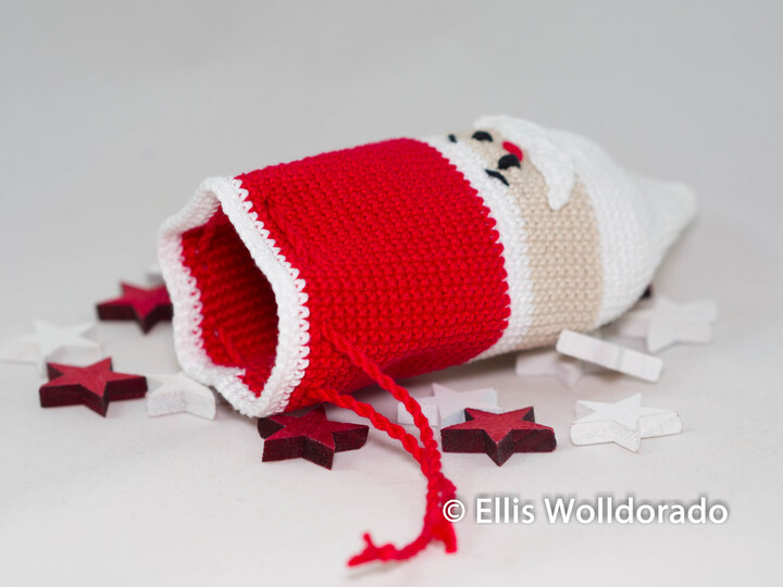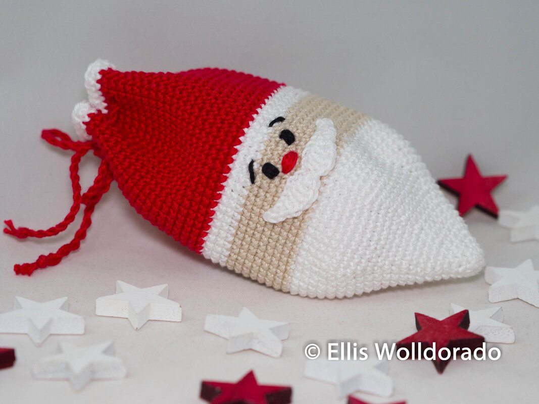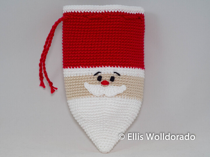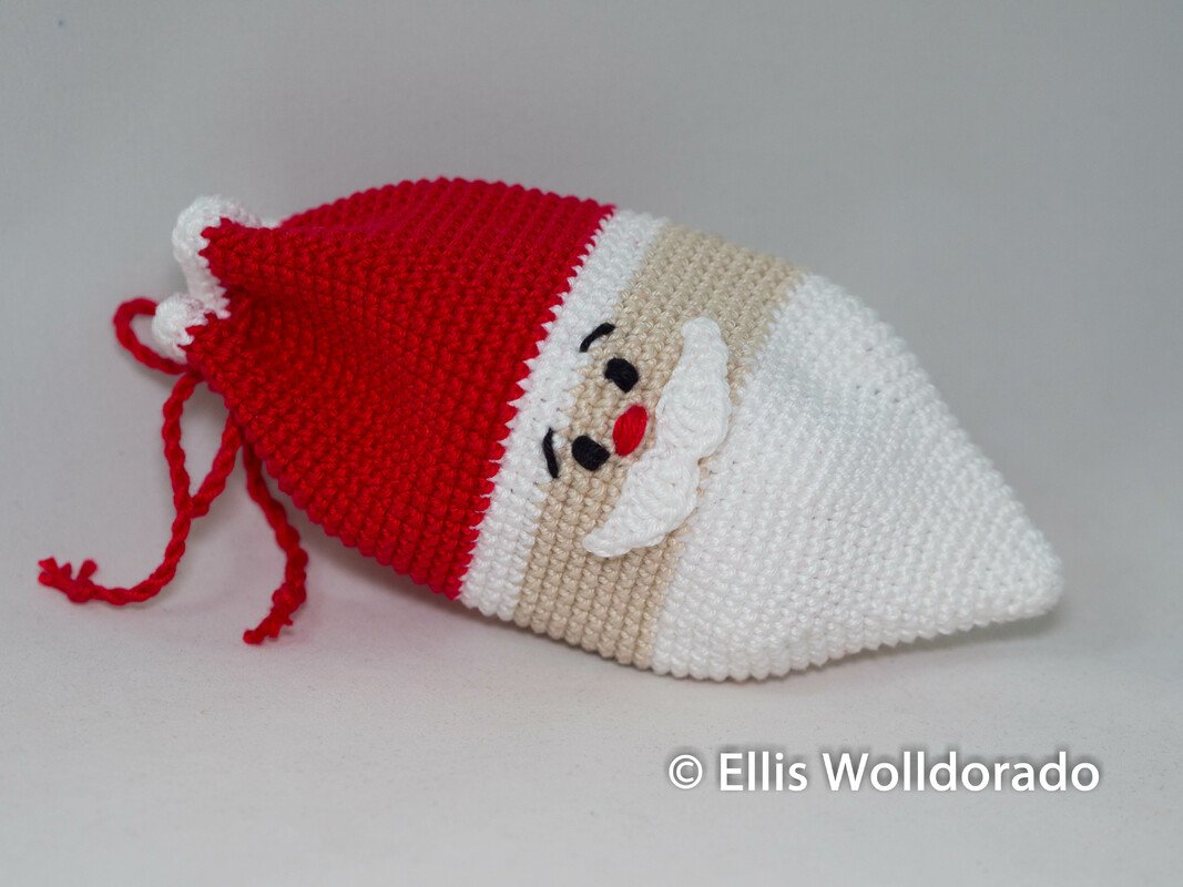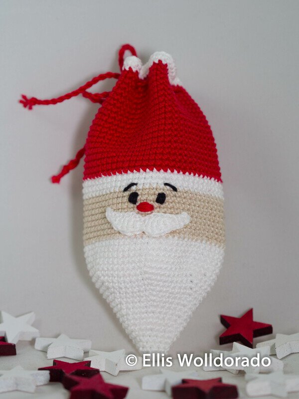 Mit diesem gehäkelten Nikolaus Geschenkbeutel lassen sich viele schöne Dinge verpacken und verschenken.