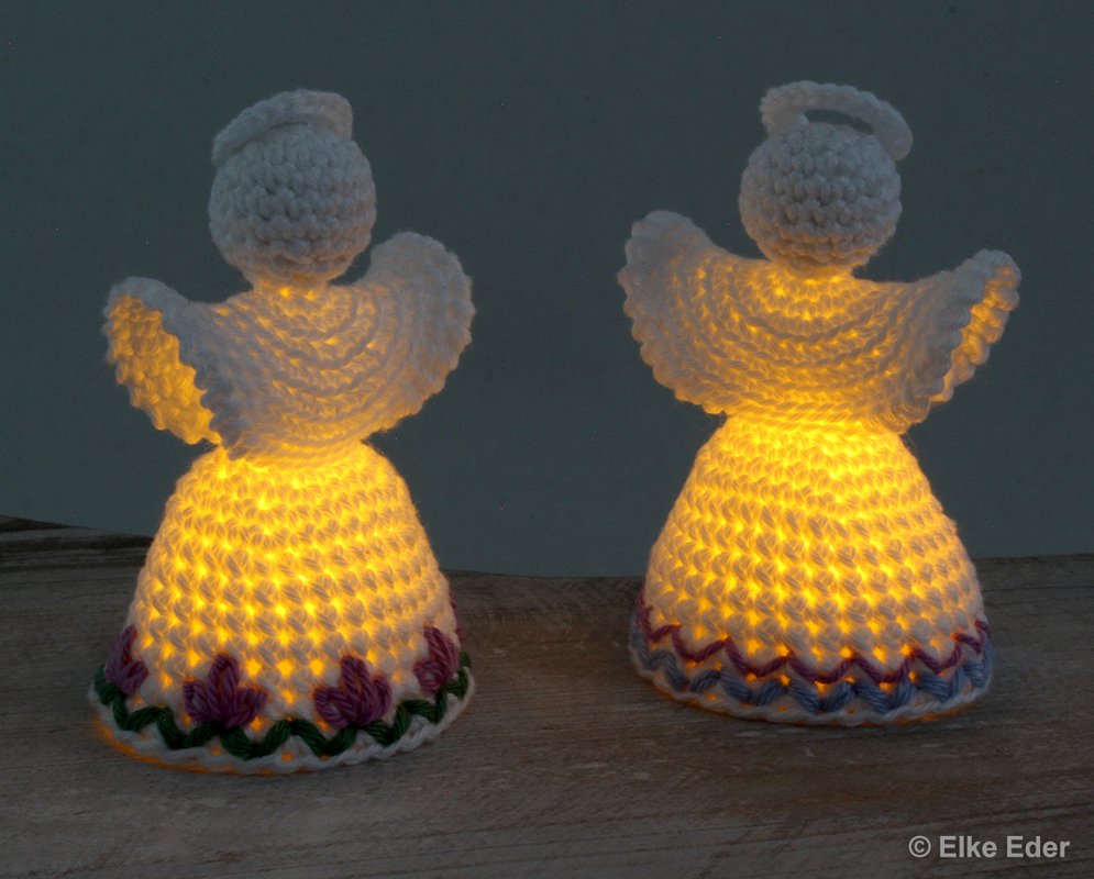 The white angels glow magically in the dark with an LED tea light underneath. The colorful angels are not so suitable for this, as they swallow too much light.