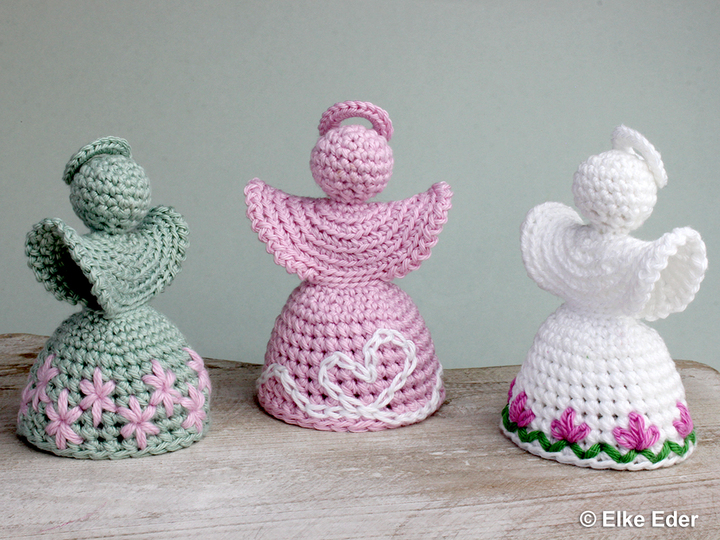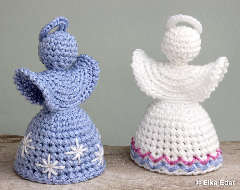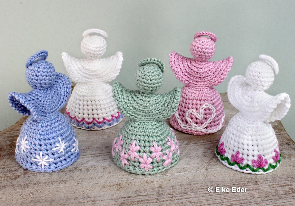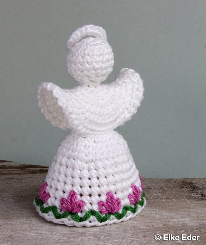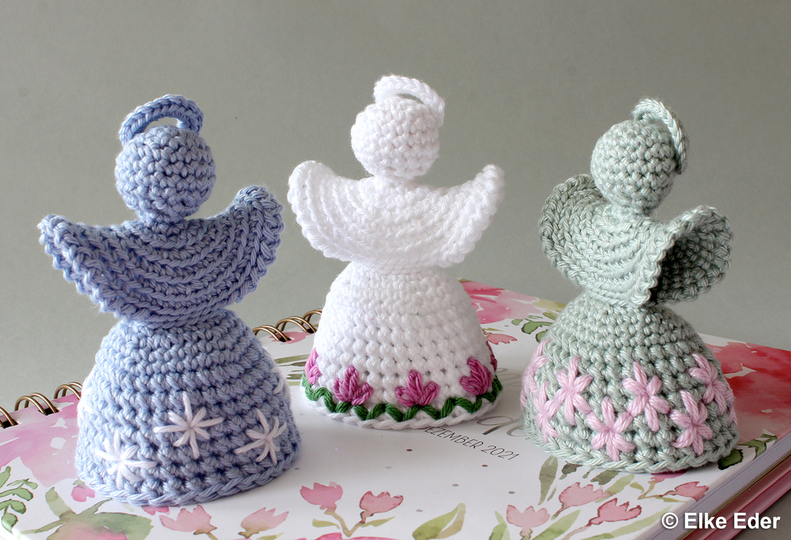 The skirt of the angel consists of Doppelmaschen, which provide an excellent basis for embroidery patterns. The angel is designed in such a way that there are no increases in the area of the Doppelmaschen - this makes them wonderfully suitable for embroidery. There are no limits here - you can embroider them as shown or create your very own creations - so each angel is guaranteed to be unique. If you prefer it classic and simple, you can simply leave the angel unembroidered (see pictures).
