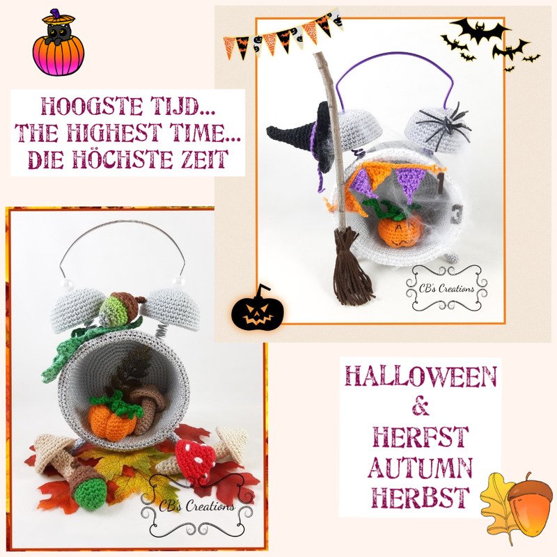 With this pattern you can make the Highest Time for Halloween and Autumn, the 7 small patterns can be found at the end of this pattern.