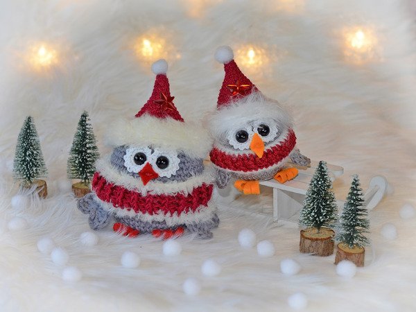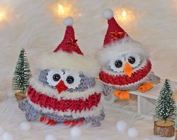 My little owls are made of Catania and hook 3,0 mm, my bigger owls are made of thicker cotton or acrylic yarn for hook 3,00-4,5 mm.