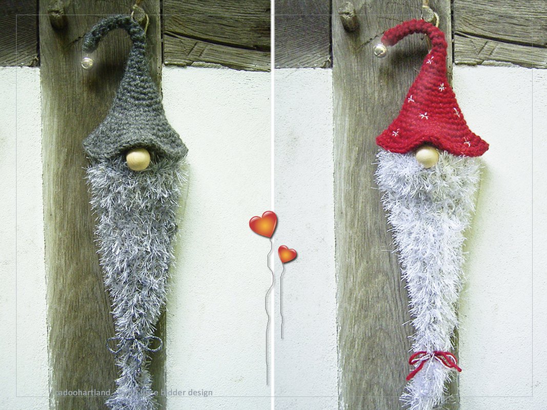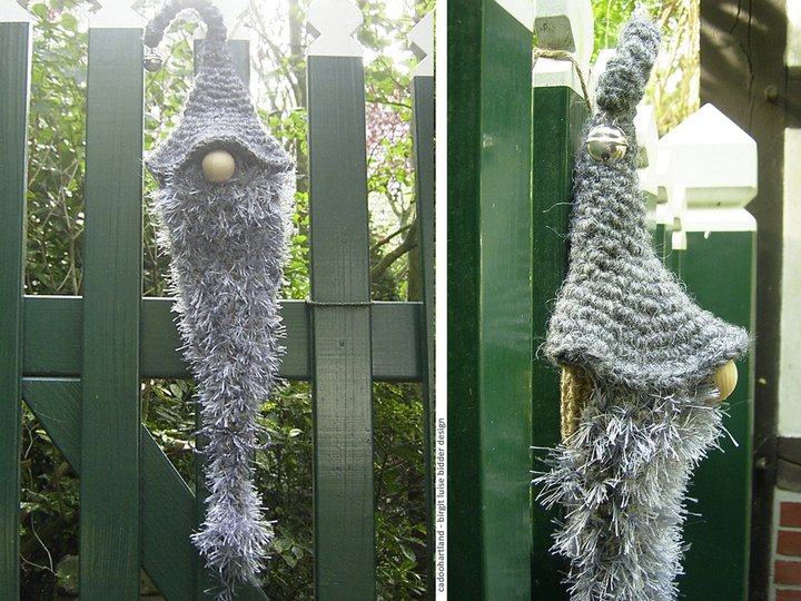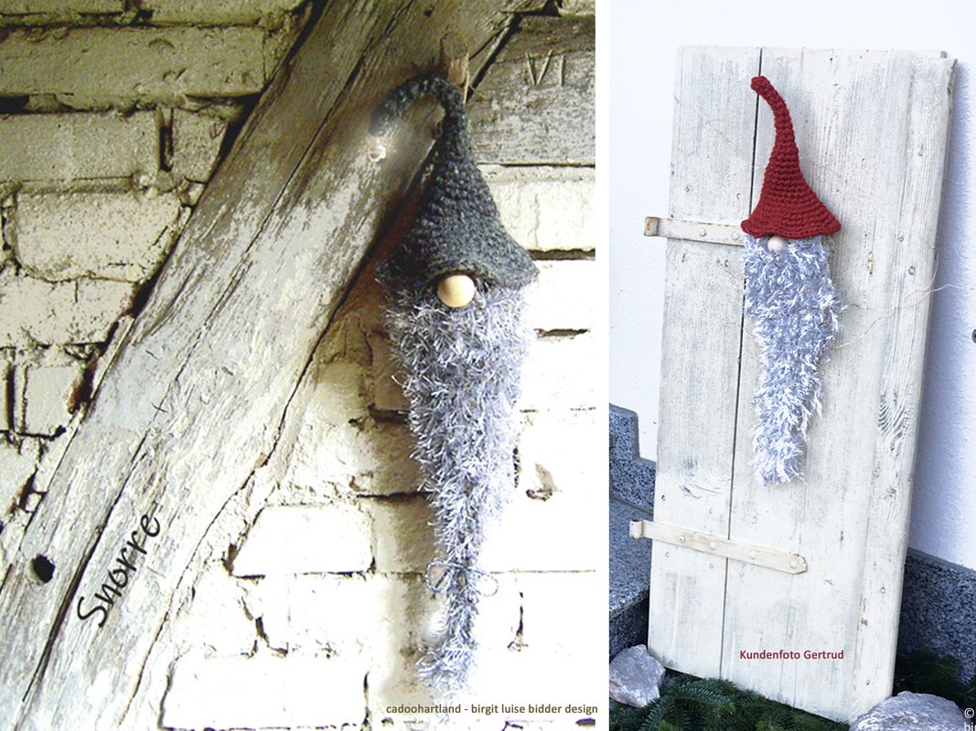 Geschützt vor Regen kannst Du Deinen Snorre auch draußen aufhängen … aber so ein Hauswichtel mag es auch gerne mollig und gesellig … nicht das er friert ;-)