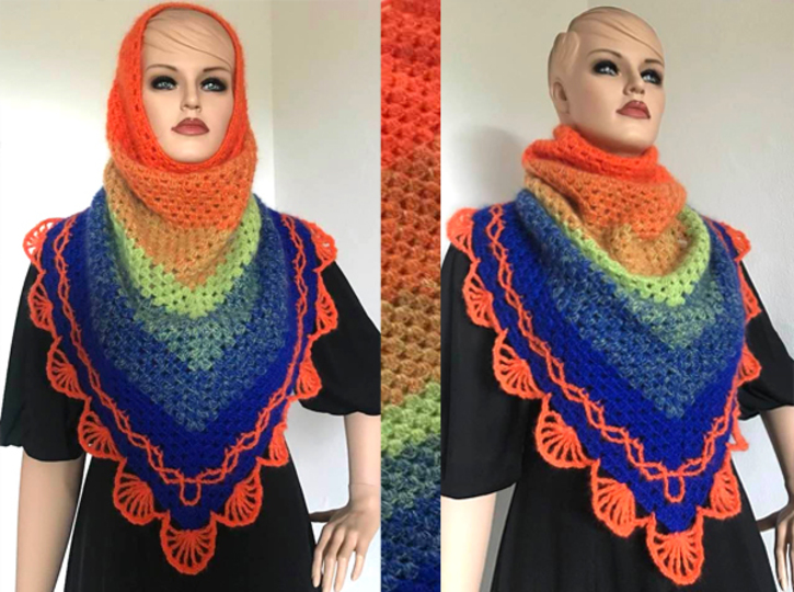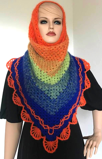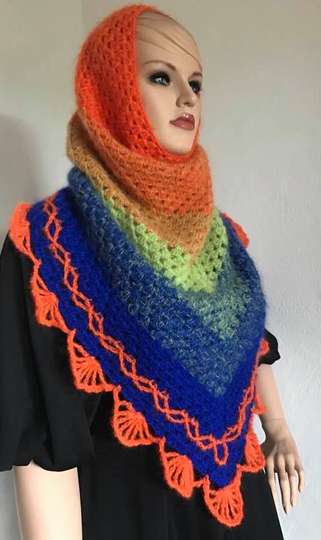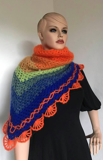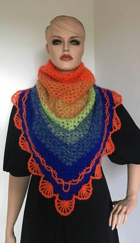 Schulterschmeichler UPPA wird mit immer 3 Knäulen gleichzeitig gehäkelt und langsam werden die Farben ..Faden für Faden..gewechselt..das ergibt dann einen schönen Verlauf