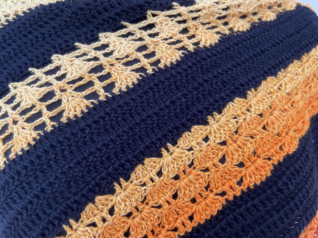 Die einzelnen Musterstreifen sind sowohl schriftlich erklärt als auch in Häkelschriften dargestellt, sodass jede*r nach eigenem Stil arbeiten kann.