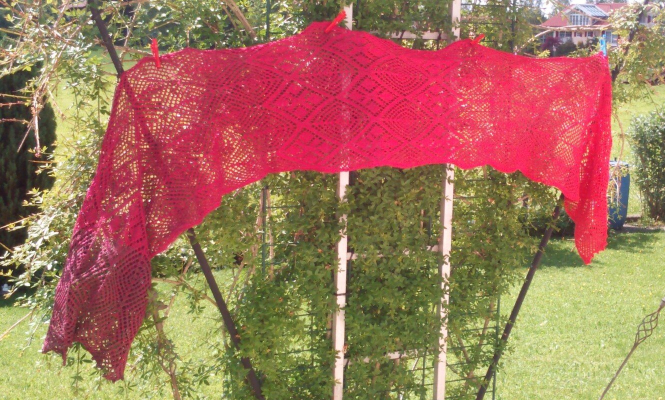 “Diamonds are girls best friends ", that's what they say and since "woman" can never have enough noble, besides the shawl "Diamonds" also this stole originated. Airy and light it caresses the shoulders of a woman on cooler days or on festive occasions. And since rhombus in English can also be translated as "diamonds", the name was the same for both the stole and the shawl.