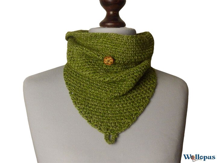 Mit dem Zipfel nach unten trage ich ihn gerne unter Jacken und Mäntel mit Kragen und Ausschnitt, damit auch das Dekolletee warm bleibt.