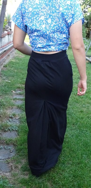 Der Rock ist ein super bequemer, schmaler Jersey Rock mit einer schlanken Silhouette, in dem man auch in Knöchellänge noch sehr gut laufen kann.
