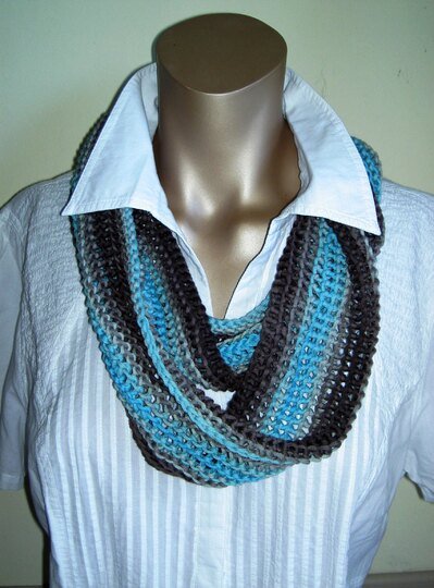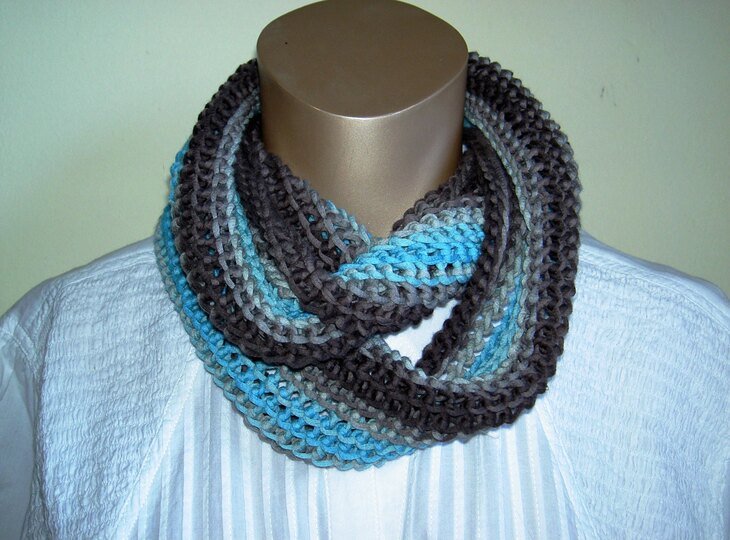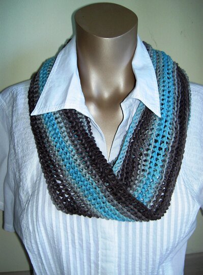 Strickanleitung für einen einfachen, luftigen Sommer-Loop aus Baumwoll-Bändchengarn.